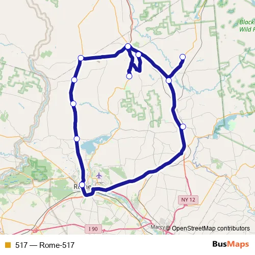The first stop of the 517 bus route is Liberty St & Washington St Rome and the last stop is Liberty St & Washington St Rome. 517 (Rome-517) is operational during on weekdays.