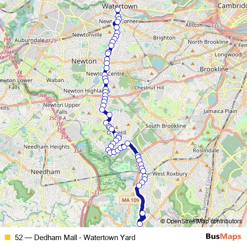 52 (Dedham Mall - Watertown Yard) Bus in Dedham