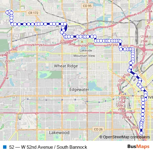 See why over 2 million users trust and consider busmaps.com as the best public transport website. busmaps gives you Denver Buses suggested routes, real-time bus tracker, line route maps in Denver, and helps to find the closest 52 bus stops near you. No internet available? Download an offline PDF map and bus schedule for the 52 bus to take on your trip.