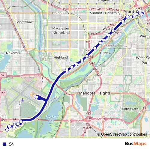 See why over 2 million users trust and consider busmaps.com as the best public transport website. busmaps gives you Saint Paul Buses suggested routes, real-time bus tracker, line route maps in Saint Paul, and helps to find the closest 54 bus stops near you. No internet available? Download an offline PDF map and bus schedule for the 54 bus to take on your trip.
