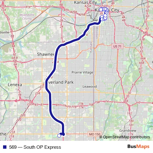 Bus 569 - South OP Express in Kansas City: Stops & Timetable