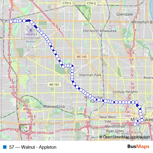 See why over 2 million users trust and consider busmaps.com as the best public transport website. busmaps gives you Milwaukee Buses suggested routes, real-time bus tracker, line route maps in Milwaukee, and helps to find the closest 57 bus stops near you. No internet available? Download an offline PDF map and bus schedule for the 57 bus to take on your trip.