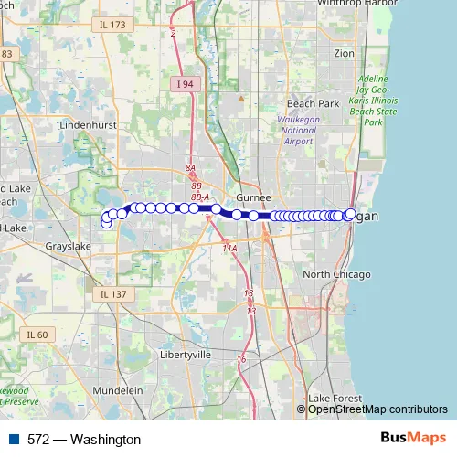 Bus 572 - Washington in Waukegan: Stops & Timetable