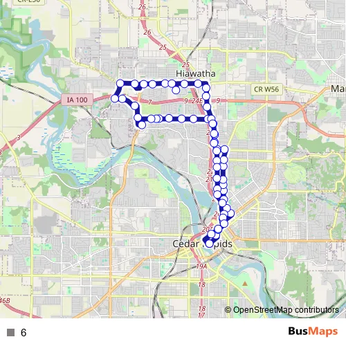 See why over 2 million users trust and consider busmaps.com as the best public transport website. busmaps gives you Cedar Rapids Buses suggested routes, real-time bus tracker, line route maps in Cedar Rapids, and helps to find the closest 6 bus stops near you. No internet available? Download an offline PDF map and bus schedule for the 6 bus to take on your trip.