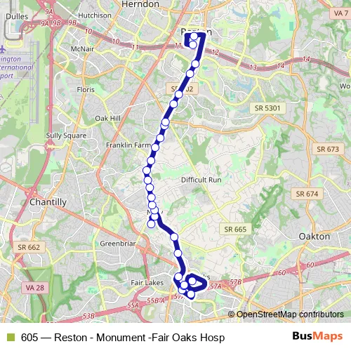 Click here to view the nearest 605 - Reston - Monument -Fair Oaks Hosp bus stop.
