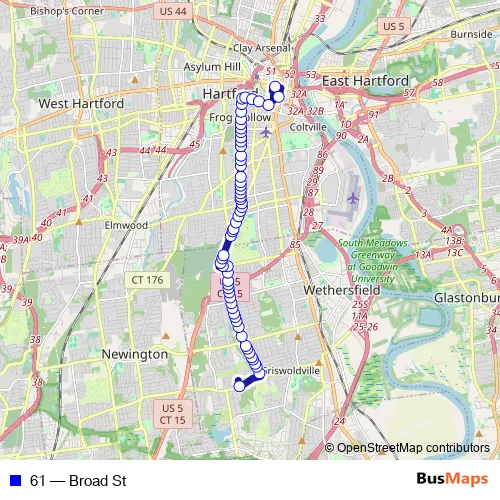 Bus 61 - Broad St in Hartford: Stops & Timetable
