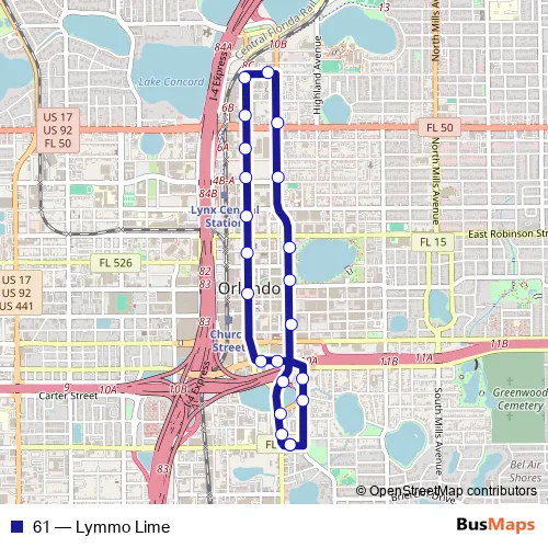 The first stop of the 61 bus route is E Gore ST & S Orange Ave and the last stop is E Gore ST & S Orange Ave. 61 (Lymmo Lime) is operational during on weekdays.