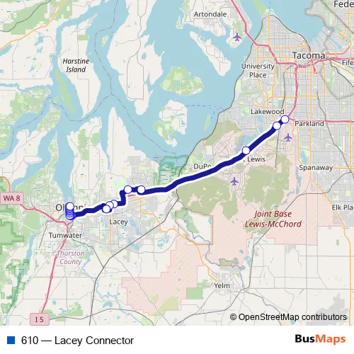 See why over 2 million users trust and consider busmaps.com as the best public transport website. busmaps gives you Olympia Buses suggested routes, real-time bus tracker, line route maps in Olympia, and helps to find the closest 610 bus stops near you. No internet available? Download an offline PDF map and bus schedule for the 610 bus to take on your trip.