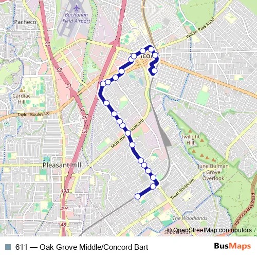 Click here to view the nearest 611 - Oak Grove Middle/Concord Bart bus stop.