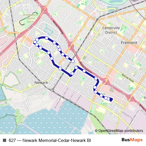 Click here to view the nearest 627 - Newark Memorial-Cedar-Newark Bl bus stop.