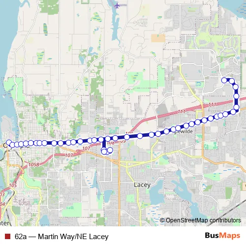 See why over 2 million users trust and consider busmaps.com as the best public transport website. busmaps gives you Olympia Buses suggested routes, real-time bus tracker, line route maps in Olympia, and helps to find the closest 62a bus stops near you. No internet available? Download an offline PDF map and bus schedule for the 62a bus to take on your trip.