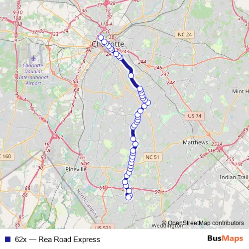 See why over 2 million users trust and consider busmaps.com as the best public transport website. busmaps gives you Charlotte Buses suggested routes, real-time bus tracker, line route maps in Charlotte, and helps to find the closest 62x bus stops near you. No internet available? Download an offline PDF map and bus schedule for the 62x bus to take on your trip.