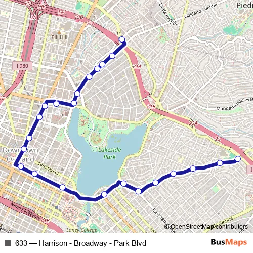 Bus 633 - Harrison - Broadway - Park Blvd: Full Schedule in Oakland