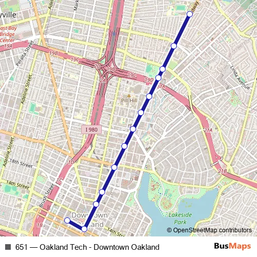 See why over 2 million users trust and consider busmaps.com as the best public transport website. busmaps gives you Oakland Buses suggested routes, real-time bus tracker, line route maps in Oakland, and helps to find the closest 651 bus stops near you. No internet available? Download an offline PDF map and bus schedule for the 651 bus to take on your trip.