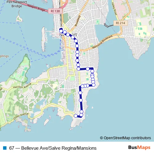 Click here to view the nearest 67 - Bellevue Ave/Salve Regina/Mansions bus stop.