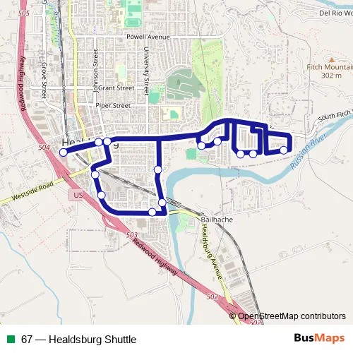 See why over 2 million users trust and consider busmaps.com as the best public transport website. busmaps gives you Healdsburg Buses suggested routes, real-time bus tracker, line route maps in Healdsburg, and helps to find the closest 67 bus stops near you. No internet available? Download an offline PDF map and bus schedule for the 67 bus to take on your trip.