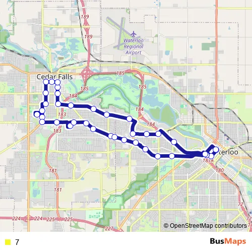 See why over 2 million users trust and consider busmaps.com as the best public transport website. busmaps gives you Waterloo Buses suggested routes, real-time bus tracker, line route maps in Waterloo, and helps to find the closest 7 bus stops near you. No internet available? Download an offline PDF map and bus schedule for the 7 bus to take on your trip.