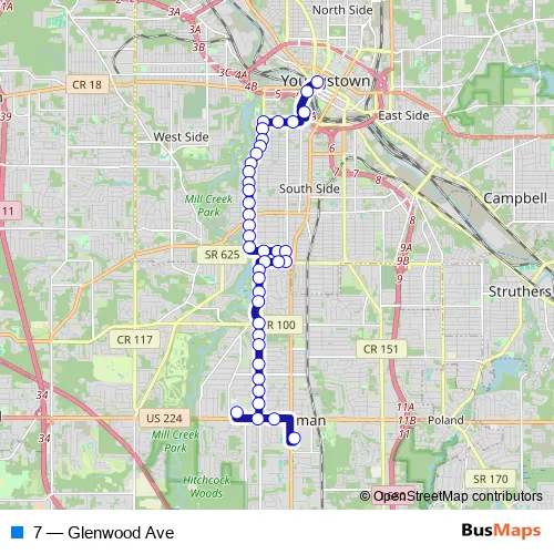 See why over 2 million users trust and consider busmaps.com as the best public transport website. busmaps gives you Youngstown Buses suggested routes, real-time bus tracker, line route maps in Youngstown, and helps to find the closest 7 bus stops near you. No internet available? Download an offline PDF map and bus schedule for the 7 bus to take on your trip.