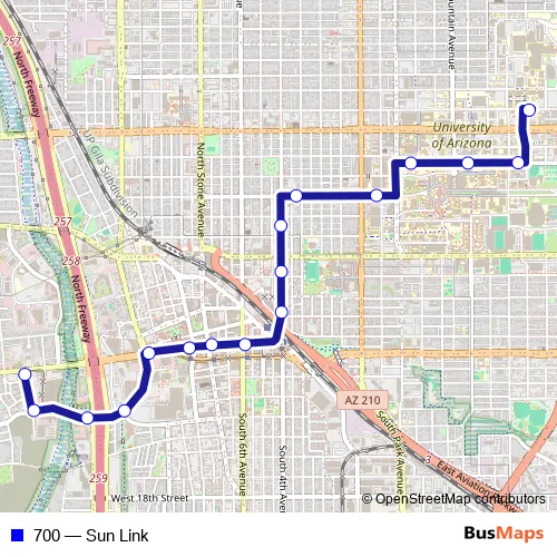 See why over 2 million users trust and consider busmaps.com as the best public transport website. busmaps gives you Tucson Trams suggested routes, real-time bus tracker, line route maps in Tucson, and helps to find the closest 700 tram stops near you. No internet available? Download an offline PDF map and bus schedule for the 700 tram to take on your trip.