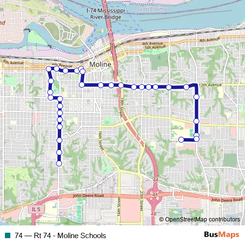 See why over 2 million users trust and consider busmaps.com as the best public transport website. busmaps gives you Rock Island Buses suggested routes, real-time bus tracker, line route maps in Rock Island, and helps to find the closest 74 bus stops near you. No internet available? Download an offline PDF map and bus schedule for the 74 bus to take on your trip.