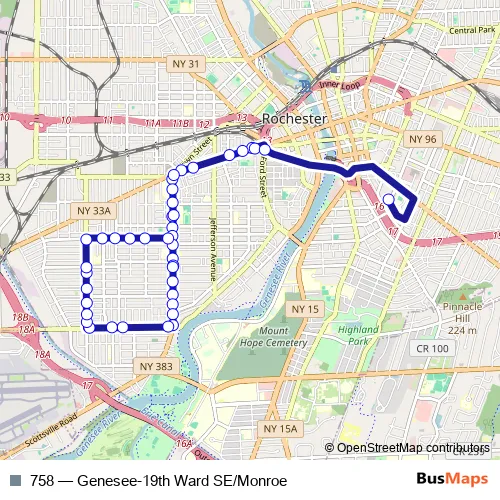 Bus 758 - Genesee-19th Ward SE/Monroe in Rochester: Stops & Timetable