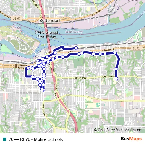 See why over 2 million users trust and consider busmaps.com as the best public transport website. busmaps gives you Rock Island Buses suggested routes, real-time bus tracker, line route maps in Rock Island, and helps to find the closest 76 bus stops near you. No internet available? Download an offline PDF map and bus schedule for the 76 bus to take on your trip.