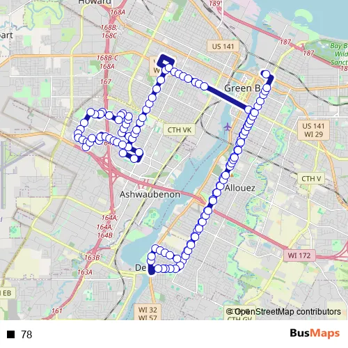 See why over 2 million users trust and consider busmaps.com as the best public transport website. busmaps gives you Green Bay Buses suggested routes, real-time bus tracker, line route maps in Green Bay, and helps to find the closest 78 bus stops near you. No internet available? Download an offline PDF map and bus schedule for the 78 bus to take on your trip.