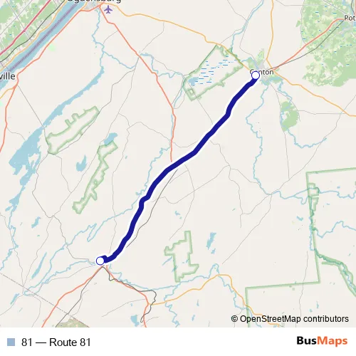 The first stop of the 81 bus route is Pine Grove - Gouverneur and the last stop is The Arc - Canton. 81 (Route 81) is operational during everyday.