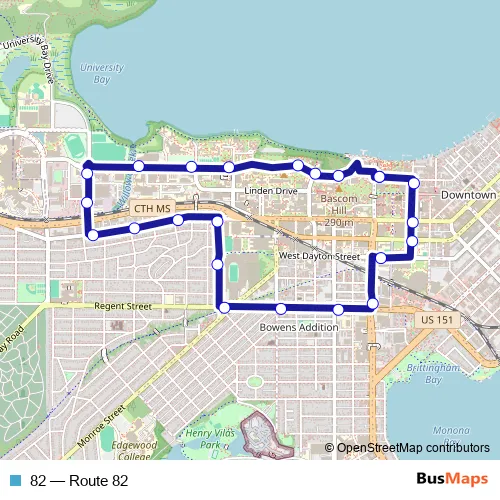 See why over 2 million users trust and consider busmaps.com as the best public transport website. busmaps gives you Madison Buses suggested routes, real-time bus tracker, line route maps in Madison, and helps to find the closest 82 bus stops near you. No internet available? Download an offline PDF map and bus schedule for the 82 bus to take on your trip.