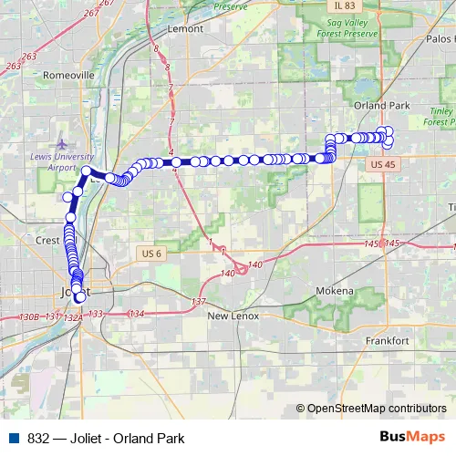 Bus 832 - Joliet - Orland Park in Joliet: Stops & Timetable