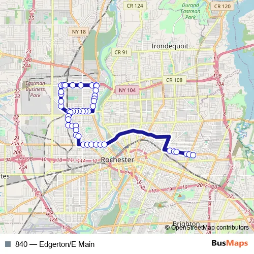 The first stop of the 840 bus route is Wren & Driving Park and the last stop is East High Main Loop. 840 (Edgerton/E Main) is operational during on weekdays.