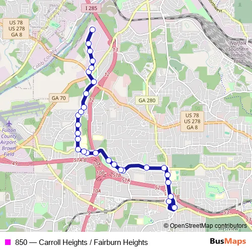 Bus 850 - Carroll Heights / Fairburn Heights Schedule in Atlanta