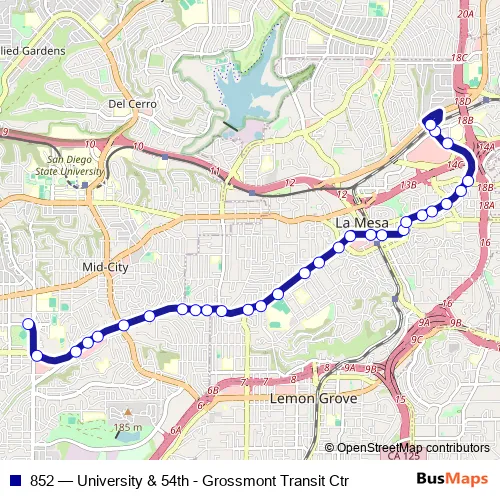 Bus 852 - University & 54th - Grossmont Transit Ctr in San Diego: Stops & Timetable