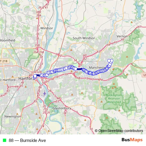 Bus 88 - Burnside Ave in Hartford: Stops & Timetable