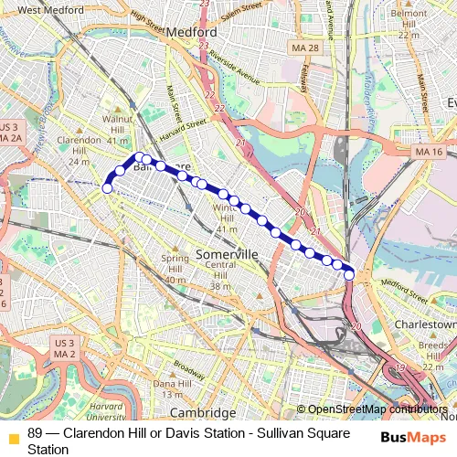 Bus 89 - Clarendon Hill or Davis Station - Sullivan Square Station in Boston: Stops & Timetable
