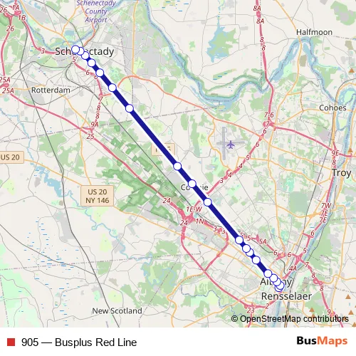 Bus 905 - Busplus Red Line: Full Schedule in Albany