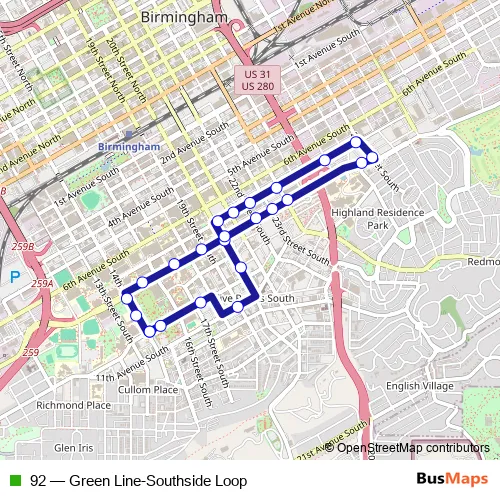 92 (Green Line-Southside Loop) Bus in Birmingham