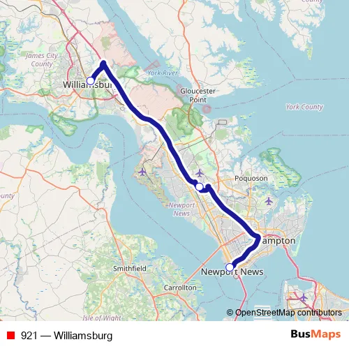 See why over 2 million users trust and consider busmaps.com as the best public transport website. busmaps gives you Newport News Buses suggested routes, real-time bus tracker, line route maps in Newport News, and helps to find the closest 921 bus stops near you. No internet available? Download an offline PDF map and bus schedule for the 921 bus to take on your trip.