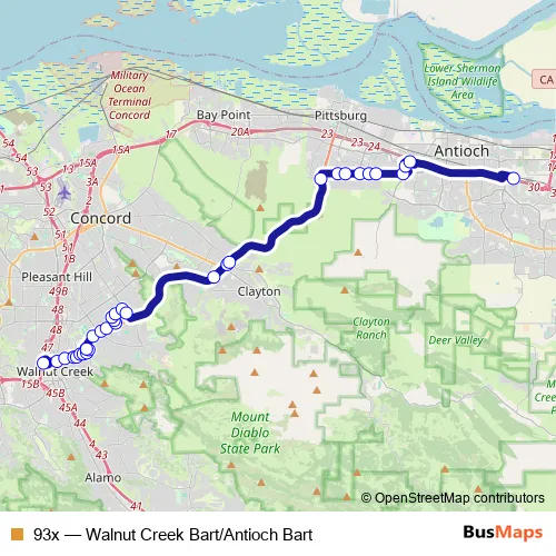 Click here to view the nearest 93x - Walnut Creek Bart/Antioch Bart bus stop.