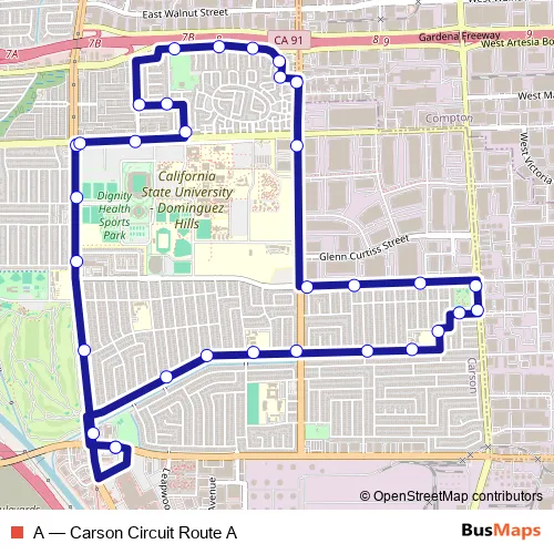 Bus A - Carson Circuit Route A in Carson: Stops & Timetable