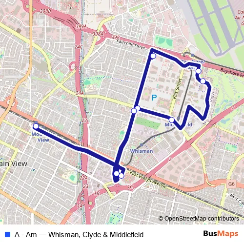 Click here to view the nearest A - Am - Whisman, Clyde & Middlefield bus stop.
