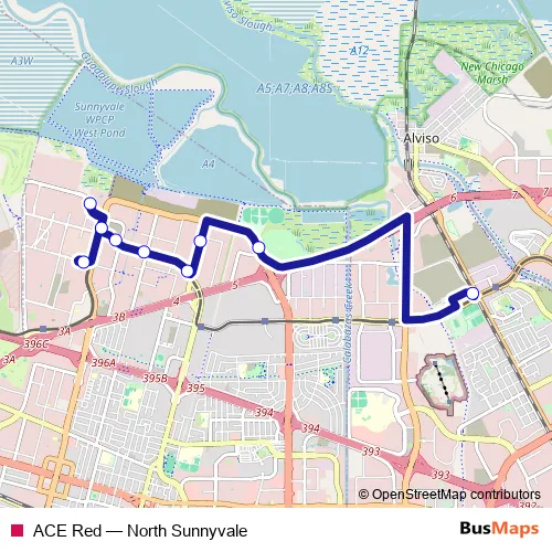 Click here to view the nearest ACE Red - North Sunnyvale bus stop.