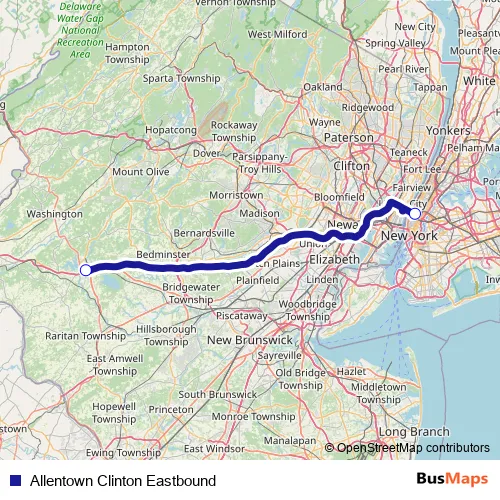 The first stop of the Allentown Clinton Eastbound bus route is New York, NY (Pabt) and the last stop is Clinton, NJ Park &Amp; Ride. Allentown Clinton Eastbound (Allentown Clinton Eastbound) is operational during on weekdays.