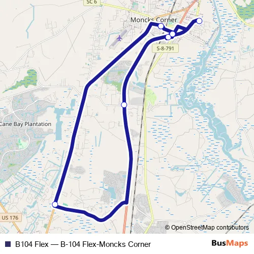 See why over 2 million users trust and consider busmaps.com as the best public transport website. busmaps gives you Moncks Corner Buses suggested routes, real-time bus tracker, line route maps in Moncks Corner, and helps to find the closest B104 Flex bus stops near you. No internet available? Download an offline PDF map and bus schedule for the B104 Flex bus to take on your trip.