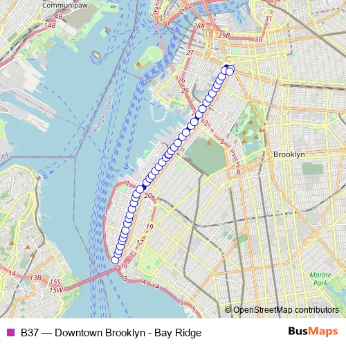 See why over 2 million users trust and consider busmaps.com as the best public transport website. busmaps gives you Brooklyn Buses suggested routes, real-time bus tracker, line route maps in Brooklyn, and helps to find the closest B37 bus stops near you. No internet available? Download an offline PDF map and bus schedule for the B37 bus to take on your trip.