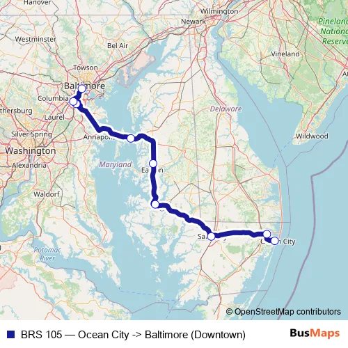 Click here to view the nearest BRS 105 - Ocean City -> Baltimore (Downtown) bus stop.