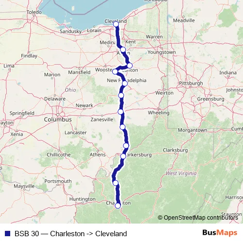 The first stop of the BSB 30 bus route is Charleston and the last stop is Cleveland. BSB 30 (Charleston -> Cleveland) is operational during everyday.