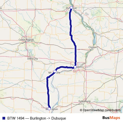 Click here to view the nearest BTW 1494 - Burlington -> Dubuque bus stop.