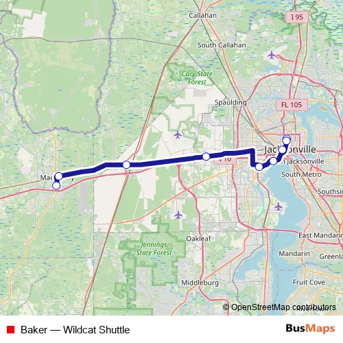 Bus Baker - Wildcat Shuttle in Jacksonville: Stops & Timetable