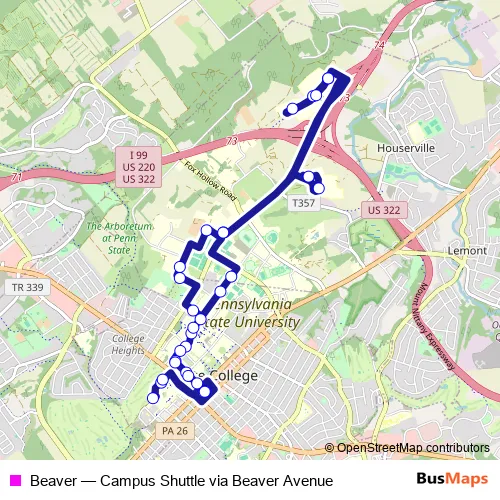 See why over 2 million users trust and consider busmaps.com as the best public transport website. busmaps gives you State College Buses suggested routes, real-time bus tracker, line route maps in State College, and helps to find the closest Beaver bus stops near you. No internet available? Download an offline PDF map and bus schedule for the Beaver bus to take on your trip.